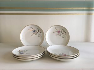 Dessert set in hand-decorated porcelain, designed by Verbano Laveno.