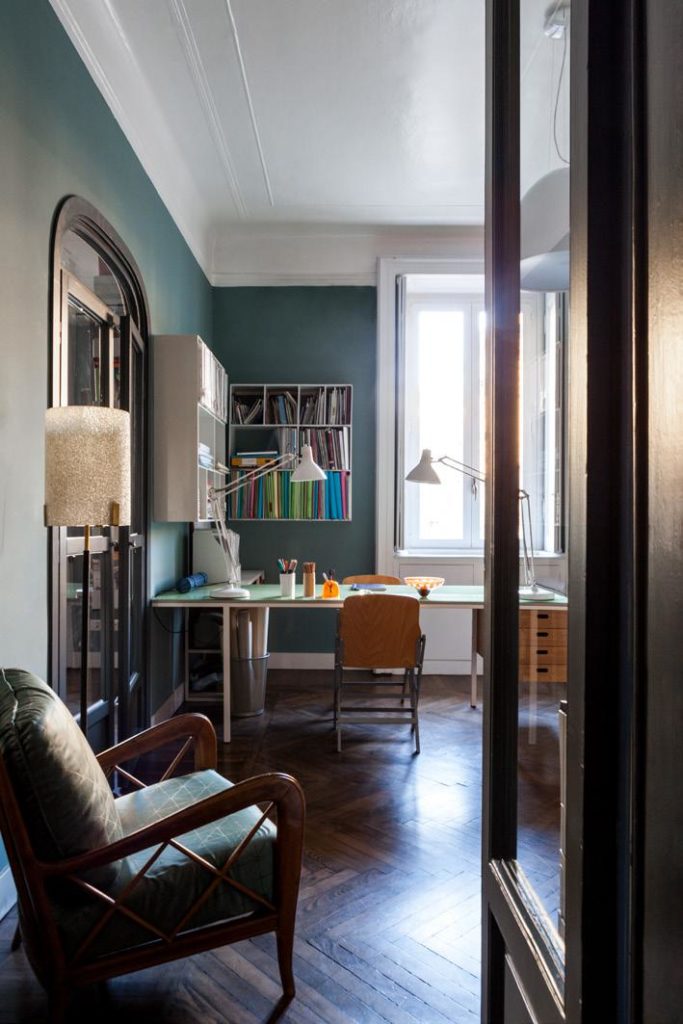 Lo studio: in primo piano l’iconica poltrona di Paolo Buffa