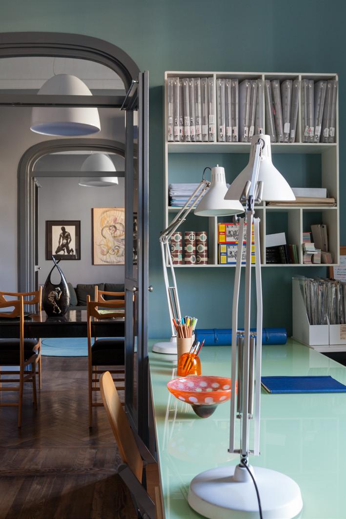 Lo studio: in primo piano l’iconica poltrona di Paolo Buffa