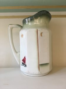 Grande brocca di Ceramiche Piemontesi con decoro realizzato ad aerografo.