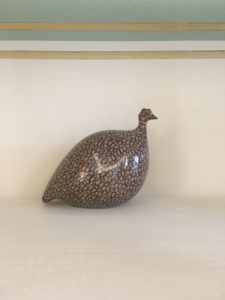 Oggetto realizzato e decorato a mano dall’artista Heidi Caillard rappresentante una gallina della Guinea.