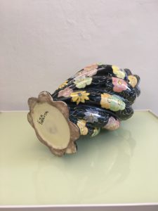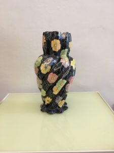 Deruta, vaso in ceramica policroma su fondo nero. Altezza 35 cm